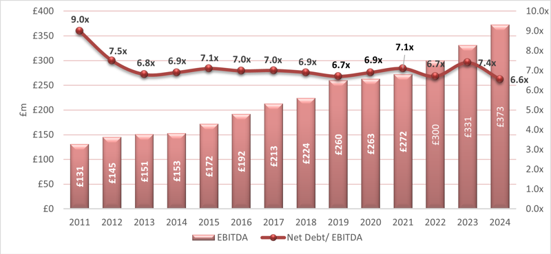 In FY24, Peel Ports Group reported revenues from continuing operations of £694m (2023: £696m) and EBITDA of £373m (2023: £331m). The Group’s EBITDA has increased annually for the last 10 years, including during the latest general economic downturn, demonstrating its resilience in challenging times.