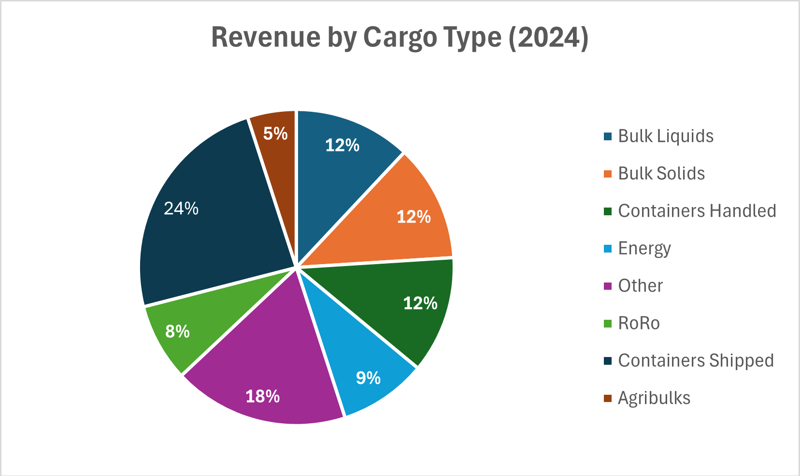 The Group handles a diverse range of cargos including bulk liquids, bulk solids, automotive, energy, agribulks and containers.