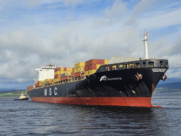 The Port of Greenock hosted the 300m long MSC Magnum VII, which has a capacity of 6,750 TEUs (twenty foot equivalent units), on Saturday morning (7 October.)