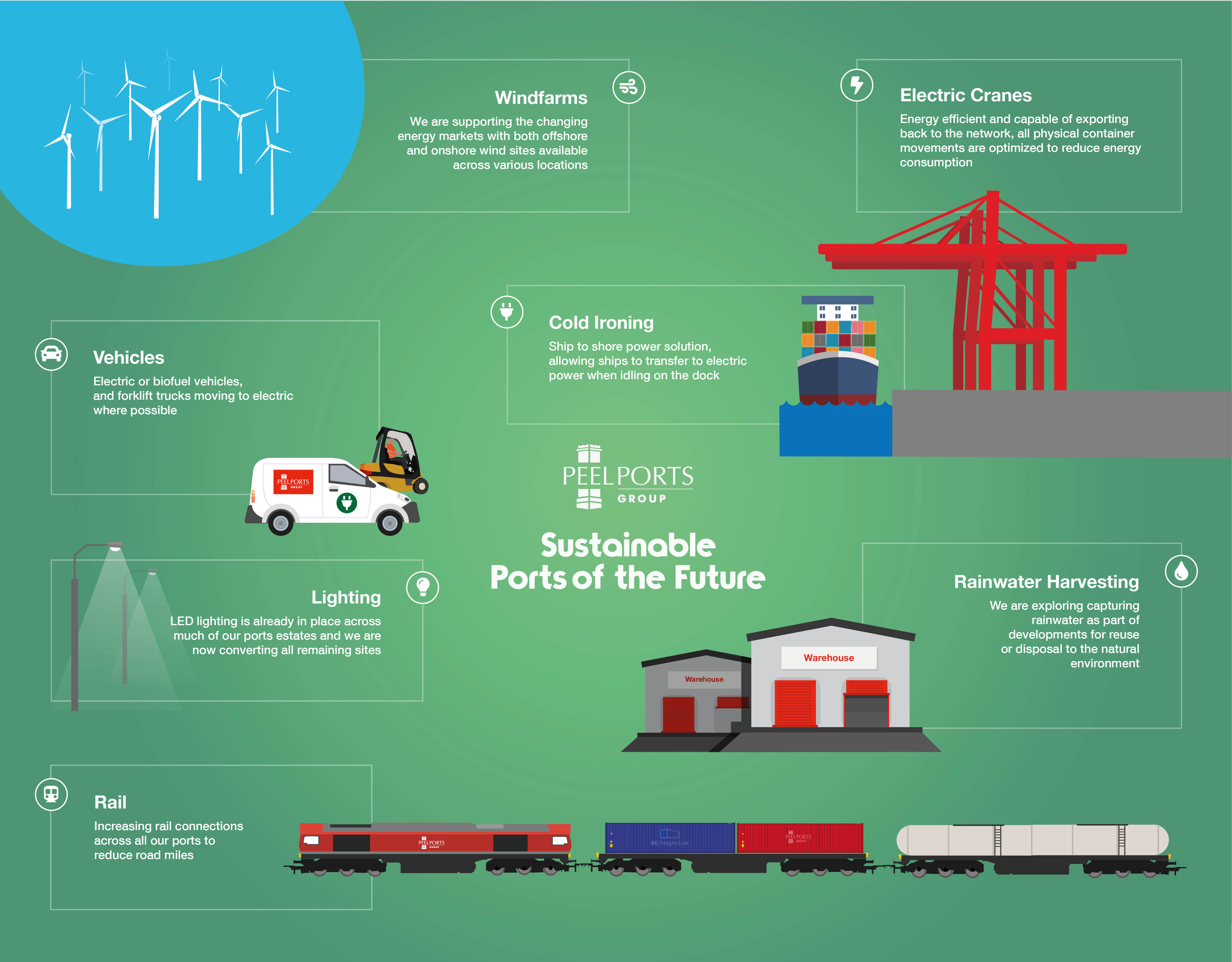 We are investing in and increasing the number of rail connections and multimodal services across our ports to reduce road miles.